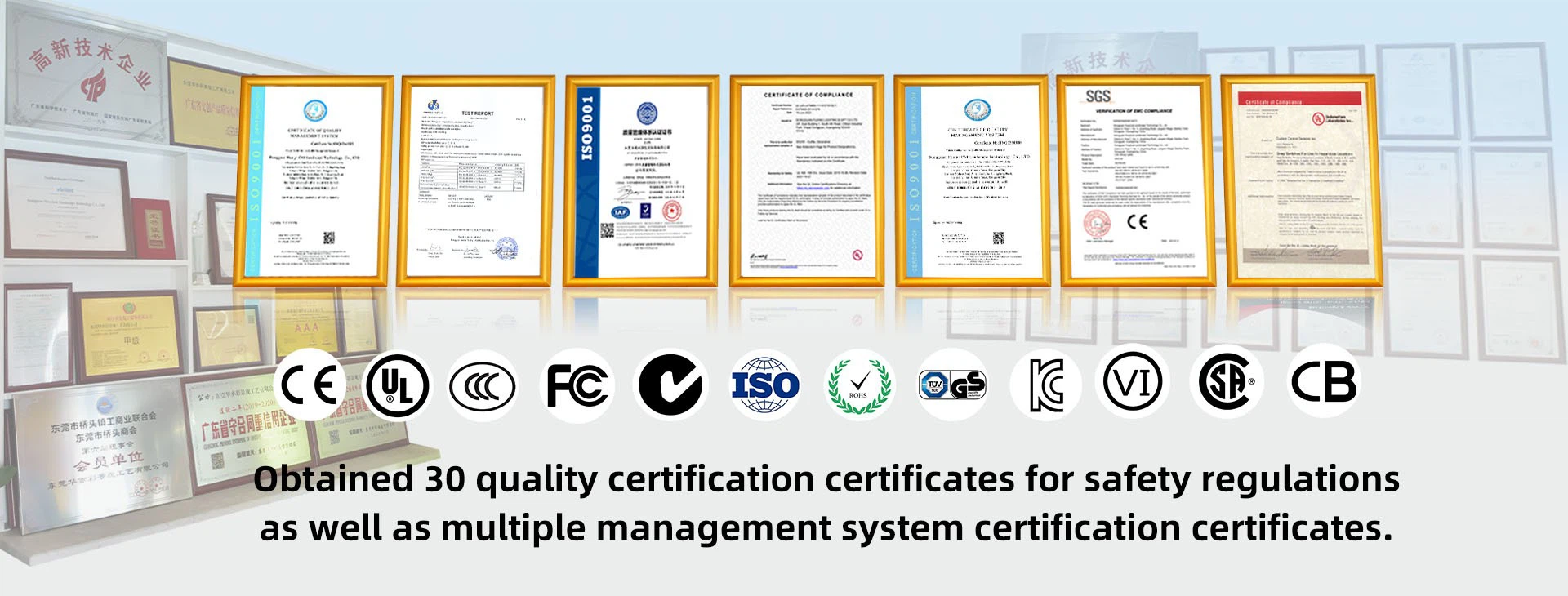 We have obtained more than 300 certifications, including CE, ROHS, ISO9001 quality management standard certification, the National AAA Credit Enterprise Engineering and Technical Quality certifications, etc.