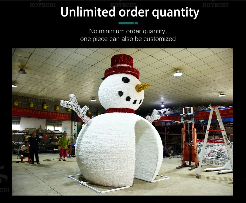 The walk-through snowman motif light is engineered for commercial outdoor Christmas displays, combining a reinforced steel structure with high-density waterproof LEDs for reliable performance. Designed as an accessible 3D installation, it supports pedestrian interaction while maintaining structural stability. With balanced illumination, modular manufacturing for efficient transport, and durable materials suited for winter conditions, this snowman light provides a dependable solution for municipalities, shopping centers, and large public venues seeking professional seasonal decorations.