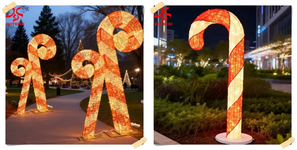 Candy cane lights symbolize the warmth and joy of Christmas, transforming public spaces into festive landmarks. Designed for commercial use, HOYECHI candy cane lights combine durable metal structures, waterproof LED systems, and full customization options to create immersive holiday displays for malls, city squares, and large-scale seasonal events.