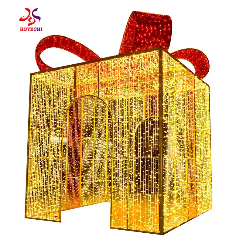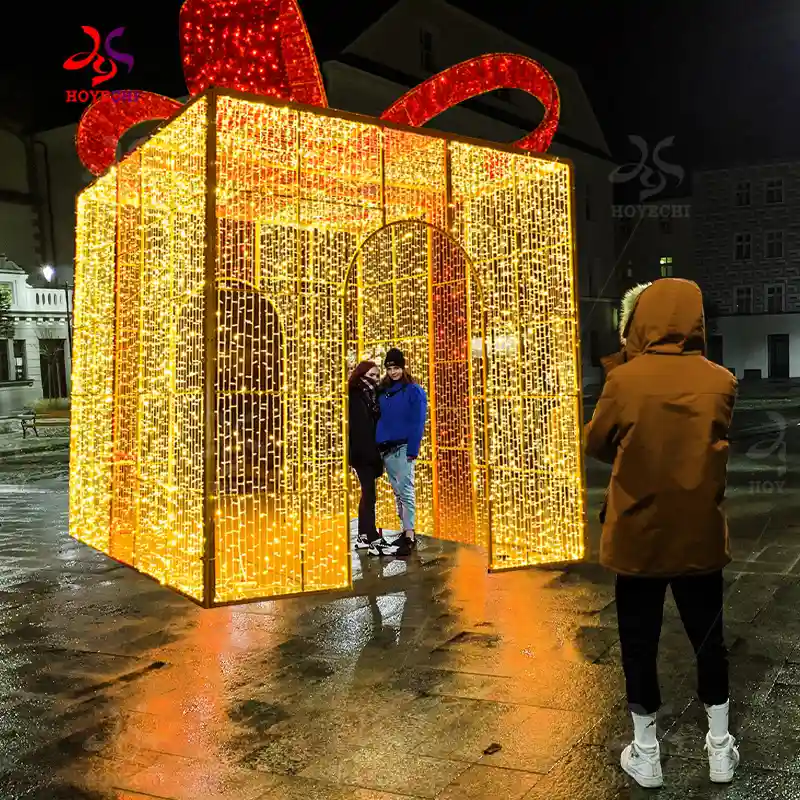 3D Gift box motif lights for outdoor Christmas events.
