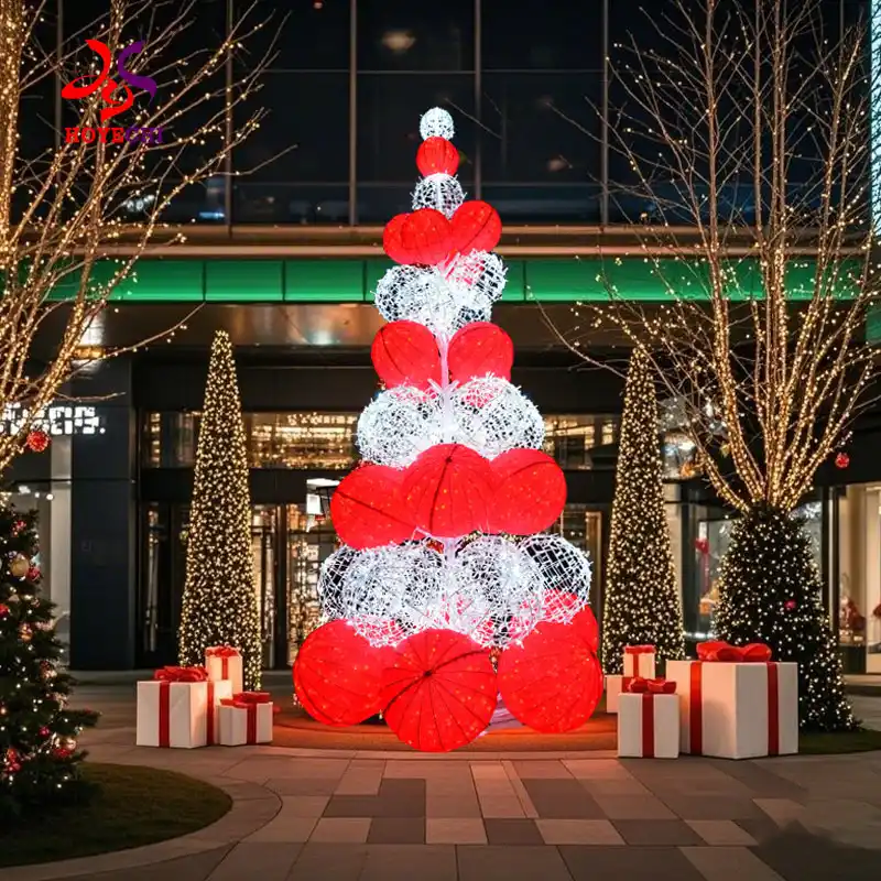 The Outdoor Decorative 3D Motif Ball Christmas Tree Light Sculpture is a visually striking solution for professional holiday lighting installations.