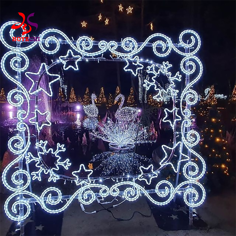 Custom photo frame lights offering flexible sizing, shapes, and decorative elements to match different event themes. Easy to install and suitable for shopping centers, commercial streets, and large festive celebrations.