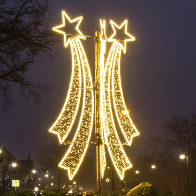 Para los proyectos de decoración navideña, los diseños montados en postes son especialmente populares porque aprovechan al máximo la infraestructura vial existente. Una vez instalados en farolas o postes, pueden transformar rápidamente una calle ordinaria en un espacio festivo más atractivo y memorable.