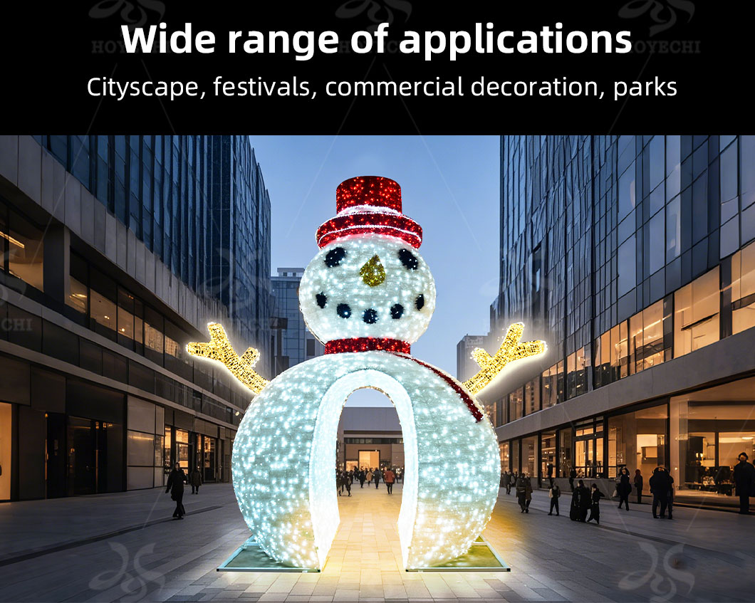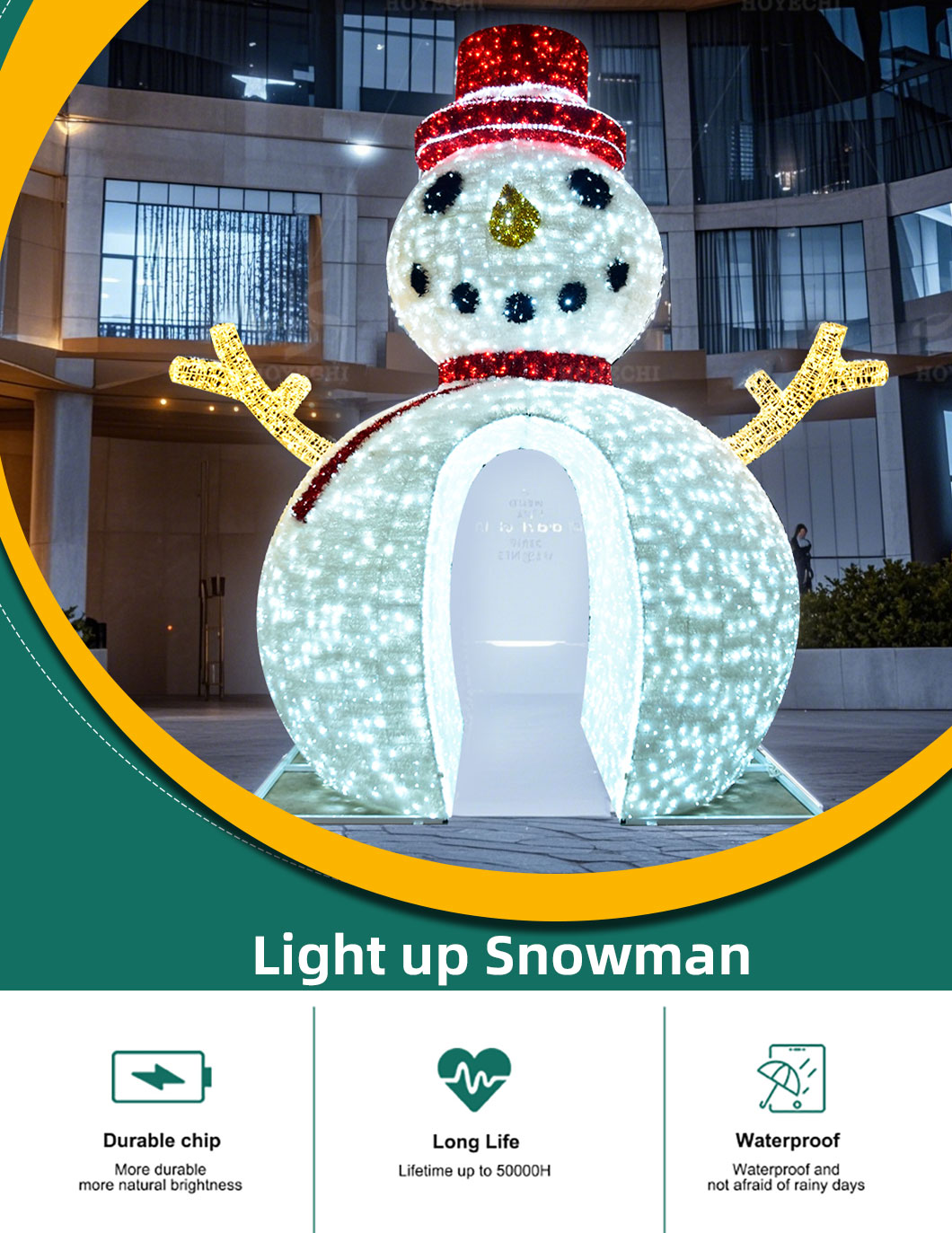 Ideal for malls, hotels, theme parks, gardens, and city Christmas projects, this outdoor snowman light helps increase visibility and seasonal appeal.