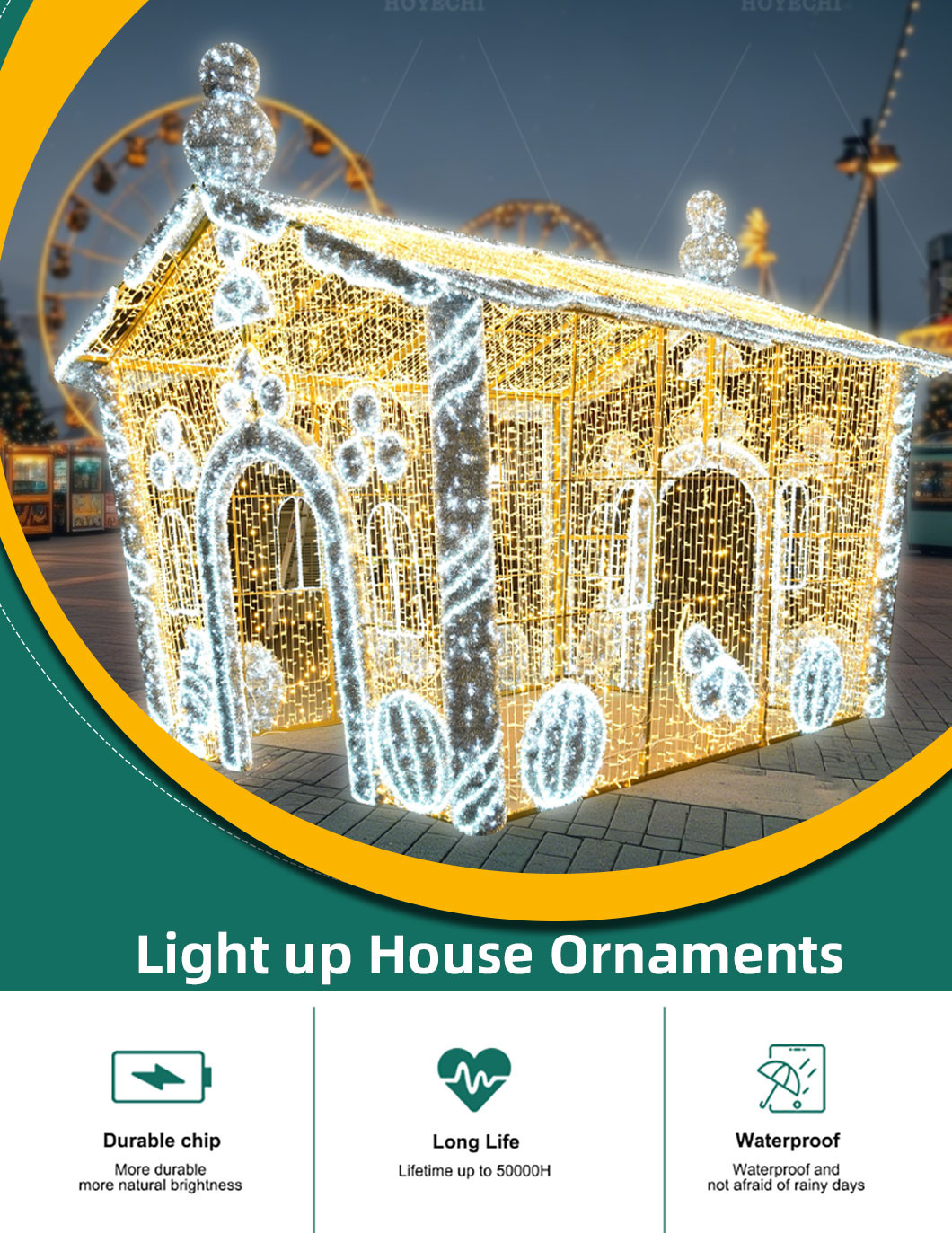 HOYECHI Outdoor Waterproof House 3D Motif Lights