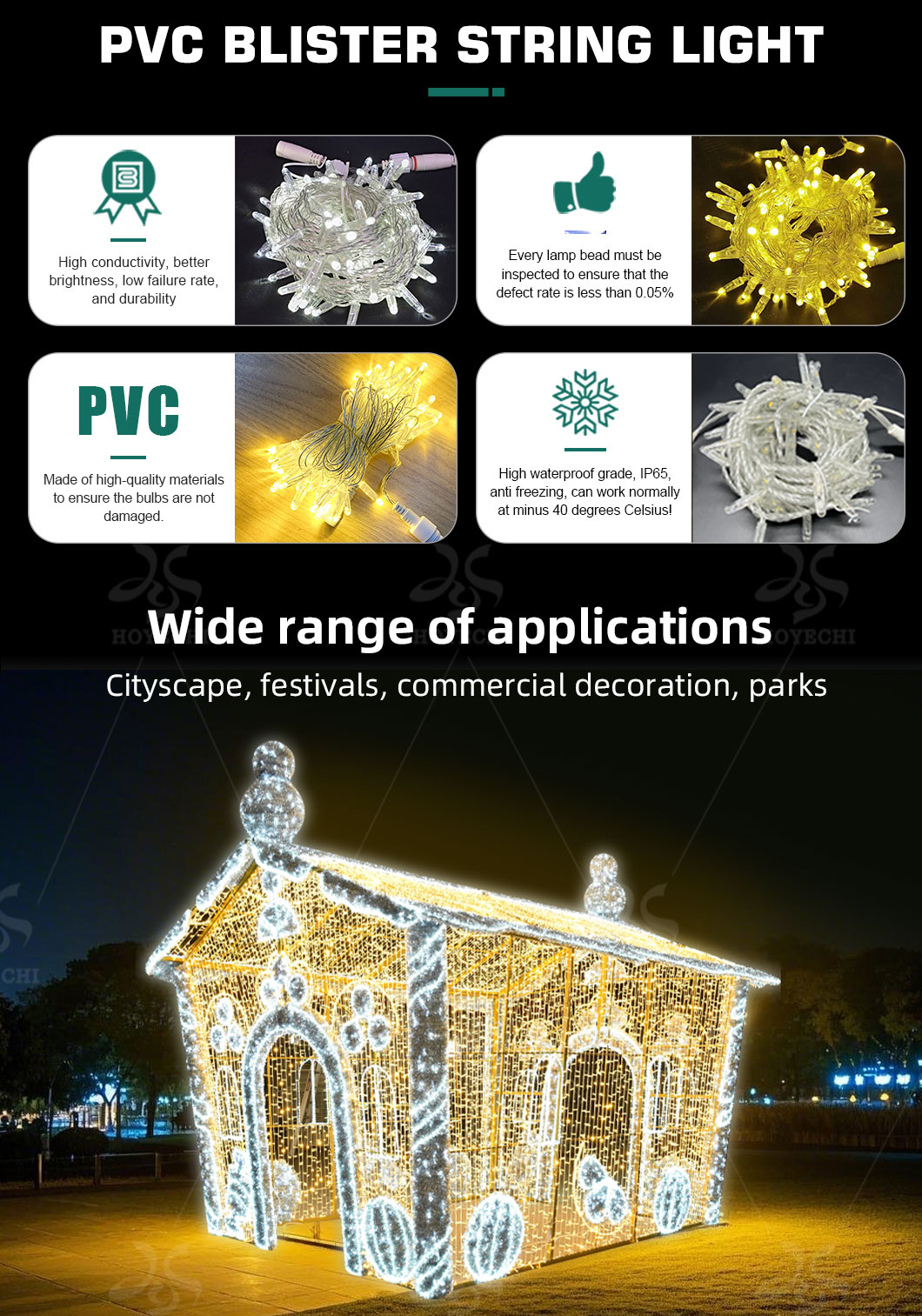 Application | Park, square, garden, hotel, bar, mall, villa, street, lighting show, different ceremonies and festivals |